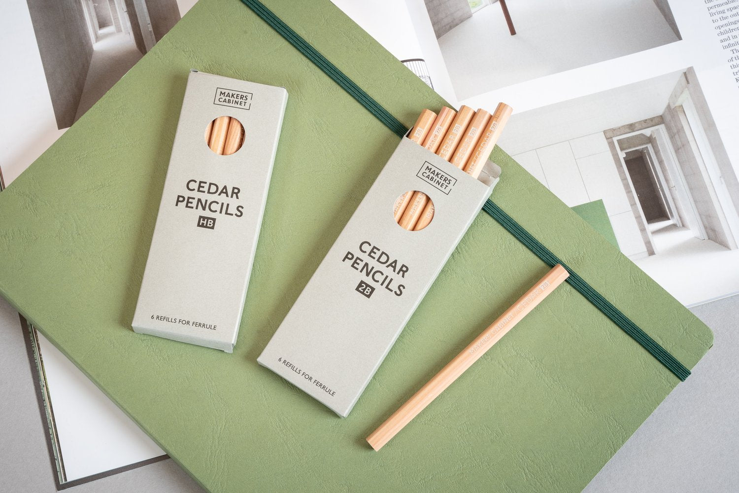 Unsere unlackierten, in Japan hergestellten Bleistifte und Radiergummis aus Zedernholz sind die beste Qualität, die Sie bekommen können. Wir glauben daran, die geringstmögliche Menge an Einweg- oder lackierten Teilen zu verwenden und nur das nachzufüllen, was Sie benötigen