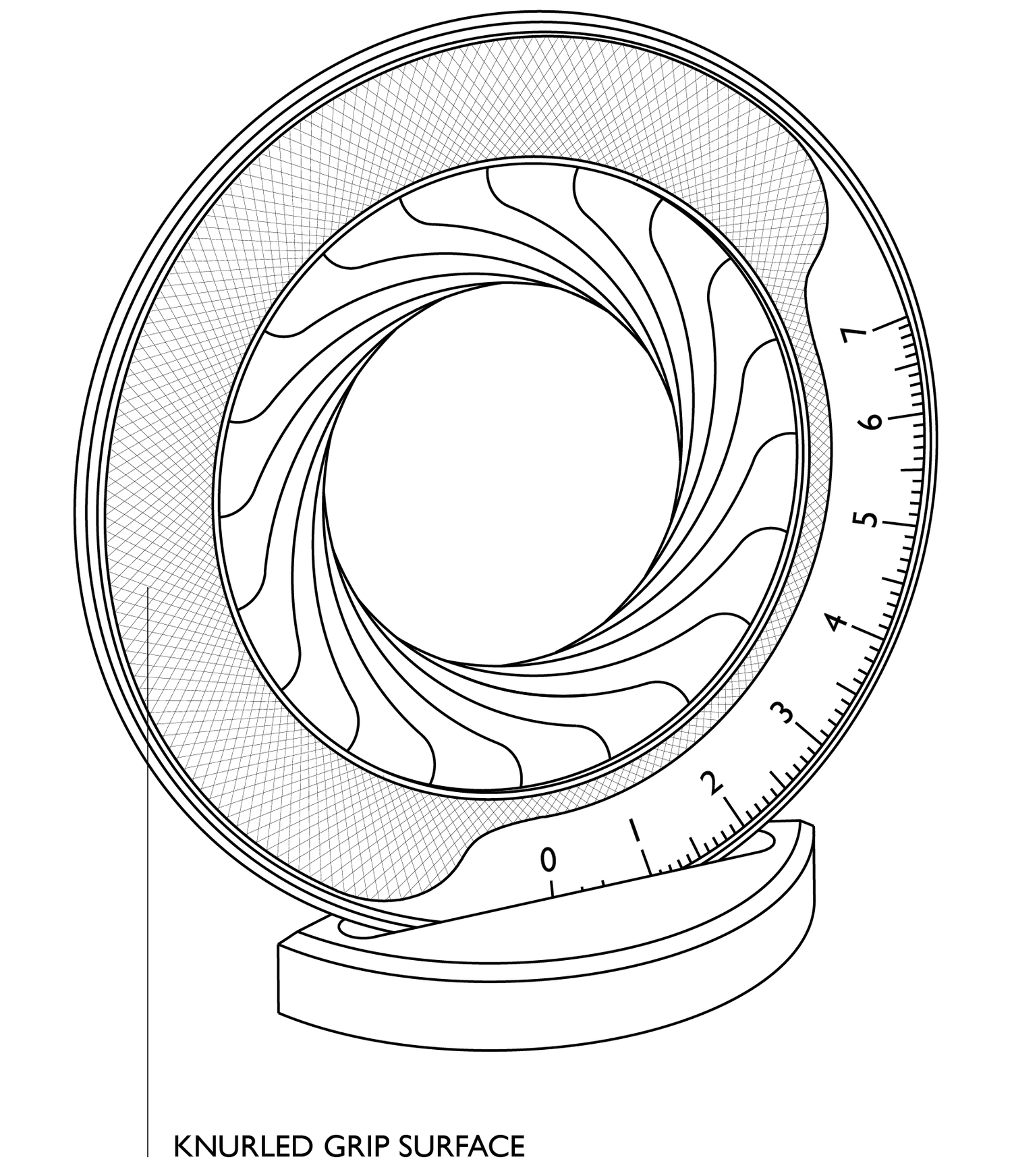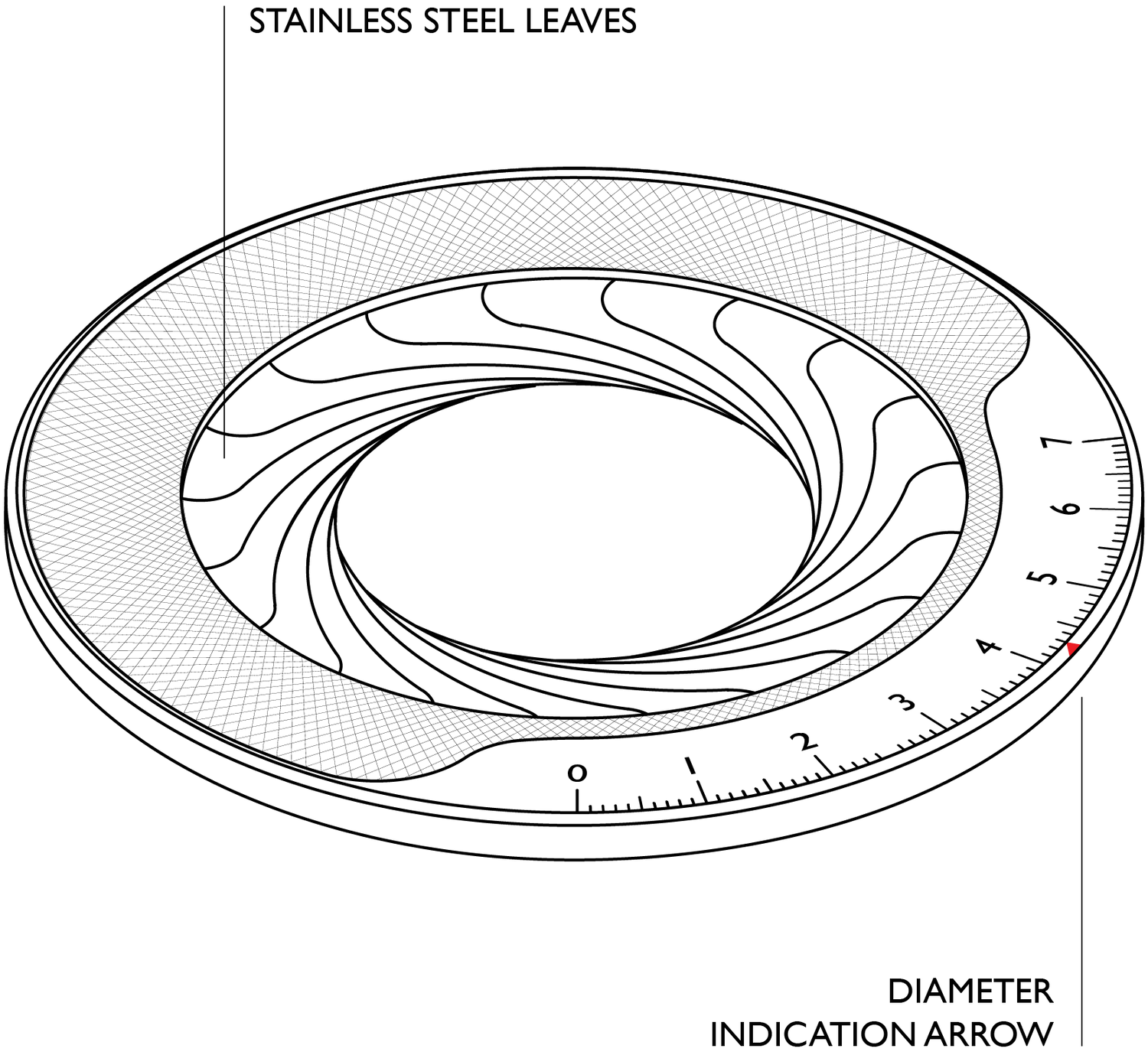 Iris gibt Ihnen die Freiheit, mühelos Kreise zu zeichnen. Genießen Sie das Zeichnen einzelner, konzentrischer oder sogar schattierter Kreise mit seiner einzigartigen beweglichen Blende. Das Walnuss-Zentrierwerkzeug ermöglicht es Ihnen, Ihren Kreis an einem bestimmten Punkt zu positionieren oder kann als Ständer verwendet werden, um Ihre Iris zu präsentieren.