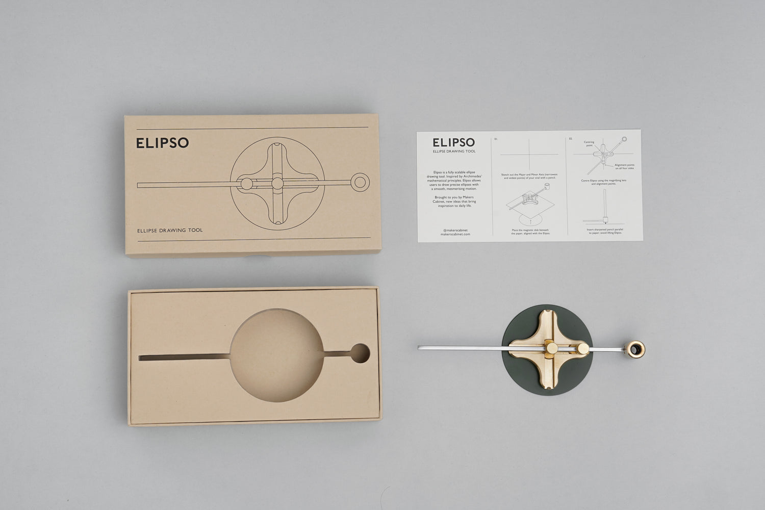 Inspired by the time-honoured geometric principles of Archimedes, Elipso allows users to draw precise ellipses with a smooth, mesmerising motion. By adjusting the arm and shuttles, it can be used with a wide range of drawing implements on various materials and surfaces.