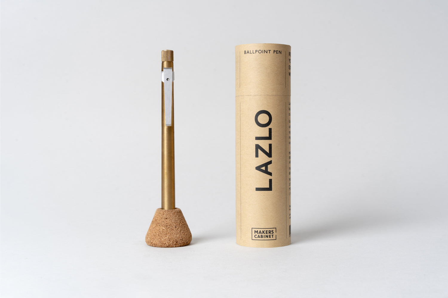 Lazlo comes packaged in sturdy card packaging with a cork Drop Stand as standard. Add a brass or aluminium Drop Stand for an even more premium feel.